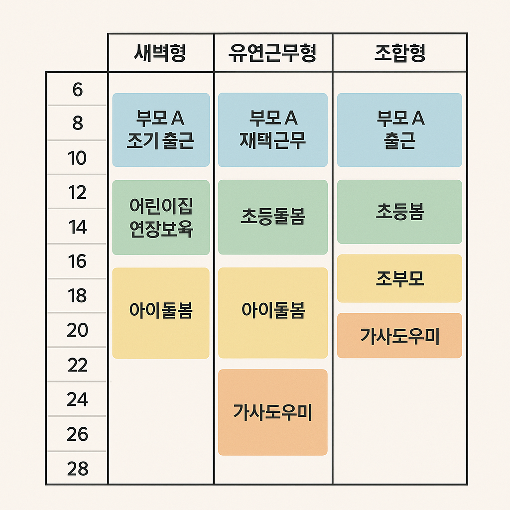 등하원 분담 현실 사례(새벽형·유연근무형·조부모 협력형)