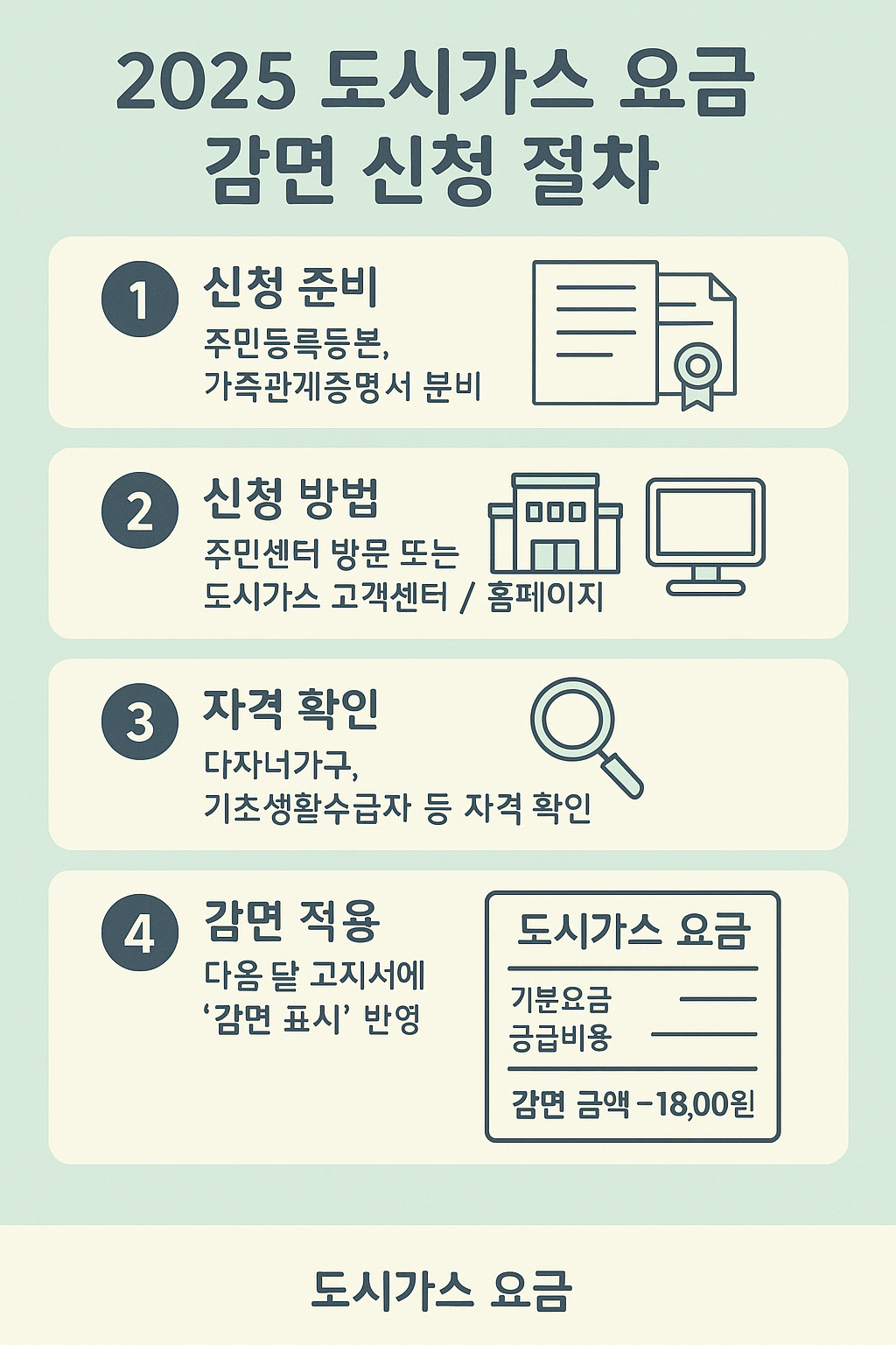- 신청 방법: 주민센터 또는 도시가스 고객센터에서 연중 접수