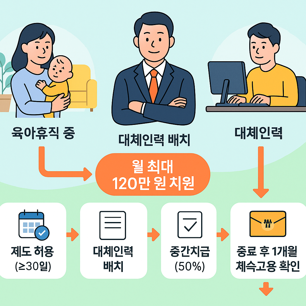 중소기업 대체인력 지원금 2025 완벽정리 | 육아휴직·단축근무 허용 시 월 최대 120만 원 지원받는 방법