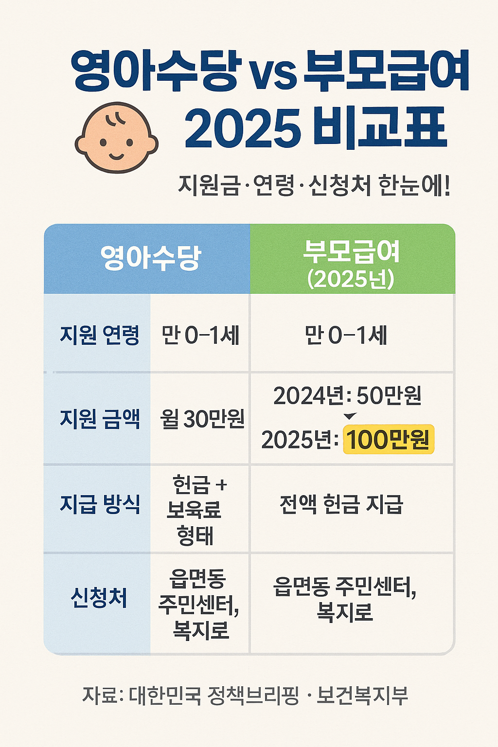 2025 부모급여 신청방법 총정리: 대상, 시기, 금액, 영아수당 비교