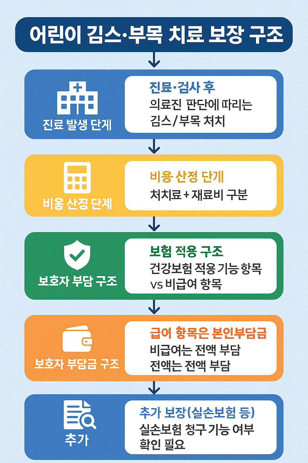 성장판 손상, 개방성 골절, 정복수술, 핀·나사 고정술 등으로 이어지는 경우 수술비가 급격히 증가합니다. 이 때 의료비 자체도 크지만 부모의 돌봄 공백까지 발생해 실질 부담은 더 커집니다.