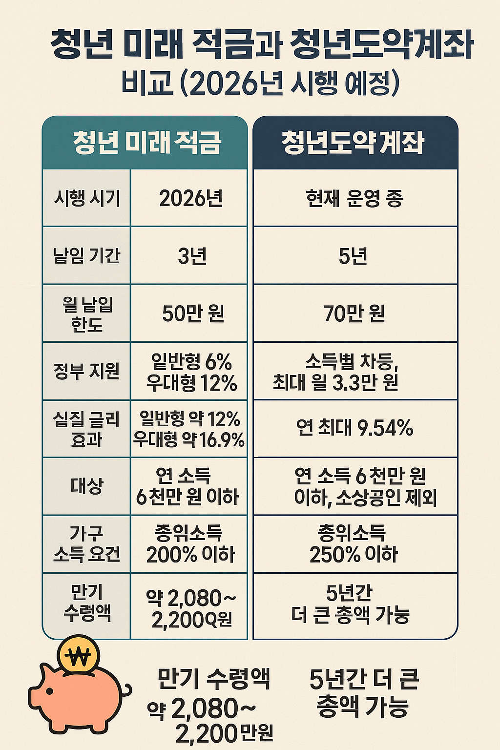 청년 미래 적금과 청년도약계좌 비교 (2026년 시행 예정)